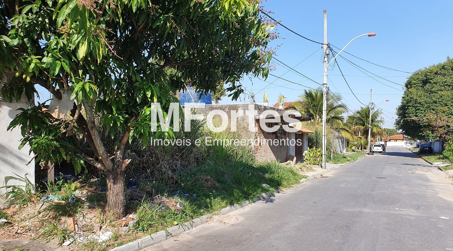 Rua asfaltada. Só não tem muro na frente do terreno